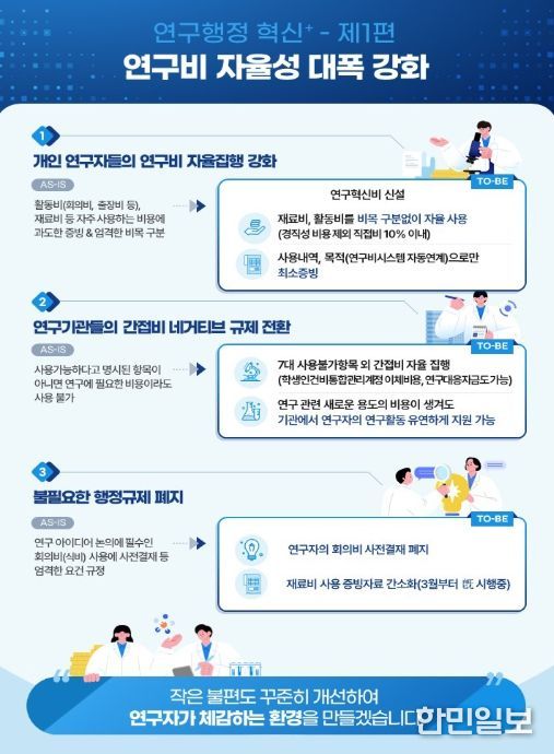 한민일보 서울포커스 기자 | 과학기술정보통신부은 4월 28일 국무회의에서 연구비 자율성 강화를 위한 「국가연구개발혁신법 시행령」 개정안이 의결됐다고 밝혔다.