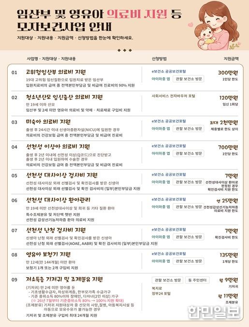 한민일보 서울포커스 국용호 기자 | 지난해 2만여명의 서울 내 영유아와 임산부를 지원한 ‘모자보건 사업’이 올해는 지원대상은 더 확대하고 지원액은 더 늘린다. 우선 미숙아에 대한 의료비 지원을 현재 1,000만원에서 최대 2,000만 원까지 늘리고, 난청 환아 보청기 지원 연령도 만 5세에서 만 12세까지 대폭 높이는 등 임신부터 출산·양육까지의 전과정을 한층 촘촘하게 관리한다는 계획이다.