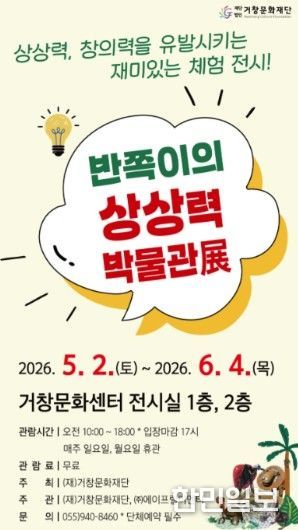 한민일보 서울포커스 김서윤 기자 | (재)거창문화재단은 가정의 달을 맞이해 오는 5월 2일부터 6월 4일까지 거창문화센터 전시실에서 2026년 기획전시 '반쪽이의 상상력 박물관展'을 개최한다.