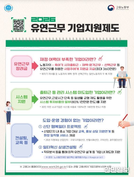 고용노동부는 민간의 유연근무 확산을 위해 유연근무 도입 시 장려금, 출퇴근관리 등 시스템 설치‧이용료, 유연근무 경험이 없는 기업을 위한 컨설팅 등을 지원하고 있다. 한편, 자원위기 경보가 ‘심각’ 단계로 격상될 경우, 기존 육아기 자녀를 둔 노동자의 시차출퇴근 활용에 대한 사업주 지원제도를 소규모기업 노동자에까지 한시적으로 확대하는 방안도 추진한다.