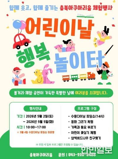 한민일보 서울포커스 임경복 기자 | 충북아쿠아리움은 어린이날을 맞이하여 오는 5월 2일부터 5월 5일까지 가족단위 방문객을 위한 특별 체험행사 “어린이 날, 우리들 세상”을 운영한다.