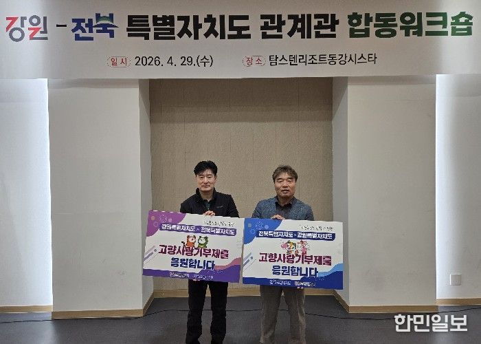 한민일보 서울포커스 박용남 기자 | 전북특별자치도는 오는 30일까지 이틀간 강원특별자치도와 공동 워크숍을 개최하고 특별법 개정 성과를 공유하며 향후 입법 협력 방안을 논의한다고 29일 밝혔다.