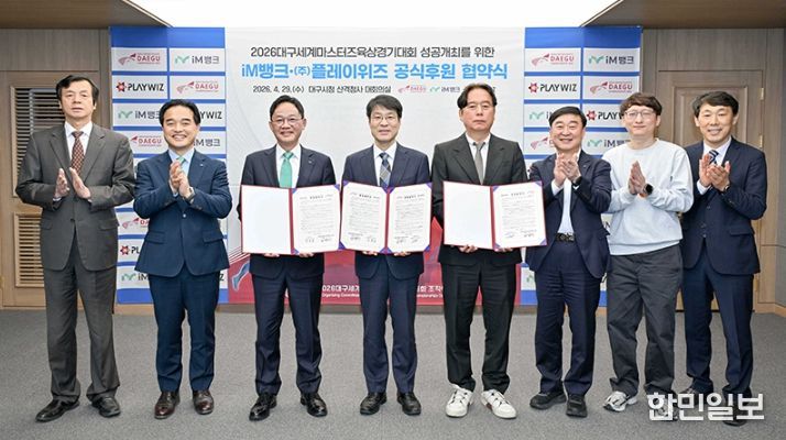 한민일보 서울포커스 임철현 기자 | 2026대구세계마스터즈육상경기대회 조직위원회는 4월 29일 시청 산격청사에서 iM뱅크 및 ㈜플레이위즈와 대회 공식 후원협약을 체결했다.
