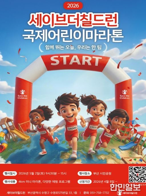 한민일보 서울포커스 임광현 기자 | 부산시는 오는 5월 2일 오전 9시 30분 부산시민공원에서 '2026 세이브더칠드런 국제어린이마라톤'을 개최한다고 밝혔다.