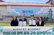 한민일보 서울포커스 기자 | 울산 중구와 울산과학대학교 RISE사업단이 4월 15일 오후 2시 중구평생학습관 배움의 뜰 강의실에서 ‘RISE사업 평생교육 협력체계 구축’ 업무협약을 체결했다. 이번 협약은 지역 수요에 기반한 평생교육을 활성화하고 다양한 협력 모형(모델)을 발굴해 공동으로 추진하기 위해 마련됐다. ‘RISE(지역혁신중심 대학지원체계) 사업’은 지자체의 지원과 대학의 우수한 인적·물적 자원을 연계해, 지역과 대학이 함께 공동의 위기를 극복하고 상생 발전을 도모하는 협력 사업이다. 이번 협약을 바탕으로 중구와 울산과학대학교 RISE사업단은 △성인 학습자 개방형 전문대학 연계 운영 △중구형 평생교육 협력 모형(모델) 구축 등에 나설 예정이다. 중구는 지역 내 평생교육 연결망(네트워크)과 행정 업무 등을 지원할 방침이다. 울산과학대학교는 대학의 교육 역량과 전문 기반 시설(인프라)을 바탕으로 지역 맞춤형 학습-고용 선순환 체계를 구축하고, 성인 학습 전문 과정 및 RISE 문화체험 프로그램 등을 운영할 계획이다. 중구 관계자는 “지역 대학교와 협력해 주민들에게 더욱