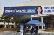 한민일보 서울포커스 곽동근 기자 | 김효숙 세종특별자치시의회(나성동, 더불어민주당) 부의장이 시민과 직접 소통하고 세종시와 나성동 발전을 위해 고견을 듣는 ‘찾아가는 파라솔’ 행사를 13일 오전 10시부터 오후 5시까지 나성동 행복누림터 앞에서 개최했다. 지난 2023년 11월 의정보고회 개최 이후 더 많은 시민을 만나기 위해 지난해부터 11월이면 야외에 아침부터 저녁까지 파라솔을 펴고 주민과 당원을 만나는 자리를 마련하고 있다. 김효숙 부의장은 “정해진 짧은 시간 동안 이뤄지는 보고회 형식으로는 더 많은 분을 뵙기 어려워 하루 종일 시민을 기다리는 현장 상담 방식을 바꿨다”며 “생각보다 많은 분이 찾아와주셨는데 오전 10시부터 시작인데도 오전 9시 20분부터 기다리고 계시는 시민분도 계셨고, 오가다 편하게 들리거나 지난해에 이어 또 방문하신 단골 주민도 생겼다”고 설명했다. 이어 “우리 지역을 위해 일하는 시의원과 커피 한 잔 하며 편하게 현안에 대해 대화할 수 있다는 것을 가장 좋게 평가하시는 것 같다”며 “나성동 학생들의 통학 및 진학, 도시상징광장 활성화, 어반아트리움 등 상가공실 문제 등 나성동 주요