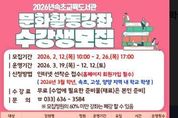 한민일보 서울포커스 곽중희 기자 | 속초교육도서관은 관내 학생 및 학부모·지역주민들의 지속 가능한 배움을 통한 자기성장을 위해 ‘2026년 문화활동강좌’ 수강생을 모집한다. 이번 강좌는 3월 19일부터 12월 12일까지 운영되며, 초등학생 대상 △어린이 글로 표현하는 세상 등 7개 강좌, 중·고등학생 대상 △핵심을 잡아주는 고등논술 등 2개 강좌, 학부모·지역주민 대상 △포토샵 자격증반 등 5개 강좌로 총 14개 프로그램이 운영된다. 수강 신청은 2월 12일부터 2월 26일까지 속초교육도서관 누리집을 통해 신청 가능하며, 스마트폰 활용교육 강좌는 방문을 통해 선착순으로 신청할 수 있다. 김주희 관장은 “지역주민 누구나 학습을 통해 배우고 성장할 수 있도록 평생교육의 기회를 지속적으로 확대·지원할 것이다.”라고 전했다. 자세한 내용은 속초교육도서관 누리집 공지사항을 참고 하거나 담당자에게 문의하면 된다.