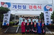 한민일보 서울포커스 김다남 기자 | 청주시는 지난 3일 흥덕구 강내면 은적산 단군성전 경내에서 단기 4358년을 기념해 개천대제를 봉행했다고 밝혔다. 국조단군봉찬회이 주관한 이날 행사는 향교유림, 지역주민 등 100여 명이 참석한 가운데 신병대 청주시 부시장이 초헌관을, 박노학 청주시의회 농업정책위원장이 아헌관을, 오명전 문의향교 유림이 종헌관을 맡아 봉행을 거행했다. 개천절 경축식에서는 국민의례, 칙어낭독, 홍익포상, 기념사, 축사 등이 이루어졌으며, 이어진 개천대제에서는 엄숙한 분위기 속에서 제례봉행이 거행됐다. 김동년 국조단군봉찬회장은 “건국 이념인 홍익인간 정신을 함양하여 인본사상, 공영복지 정신, 평화사상을 갖게 함으로써 평화롭고 건전한 사회를 건설하자”고 인사 말씀을 전했다. 시 관계자는 “이날 행사를 준비해 주신 김동년 회장님을 비롯한 관계자분들의 노고에 진심으로 감사드린다”며 “개천대제 행사를 통해 우리 민족의 뿌리를 되새기고 화합하는 계기가 되기를 바란다”고 말했다.