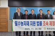한민일보 서울포커스 김다남 기자 | 충북 옥천군의회는 24일 열린 제329회 제2차 정례회 제1차 본회의에서 필수농자재 지원법률의 조속한 제정을 촉구하는 건의안을 만장일치로 채택했다. 통계청 자료에 따르면, 2024년 농가구입가격지수*는 2020년 대비 20.1% 상승했으며, 특히 재료비는 32.5% 급등했다. 반면 농업소득은 957만 원에 불과해 농가 경영난이 심화되고 있다. *농가가 영농에 필요한 각종 자재, 기계, 공산품 등을 구입하는 평균 비용을 산정한 물가지수 현재 ‘필수농자재 지원법’은 국회 농림축산식품해양수산위원회를 통과했으나, 본회의 의결과 시행령 제정 등 후속 절차가 남아있어 실제 시행까지는 상당한 시일이 소요될 전망이다. 이날 건의안에서는 ▷입법 절차의 조속한 완료 및 시행령 제정 등 후속조치 신속 추진 ▷충분한 국비 확보와 지속가능한 중장기 재정 지원방안 마련 ▷적기 지원금 지급과 현장 맞춤형 지원 등 실효성 있는 집행체계 구축을 정부와 국회에 강력히 촉구했다. 추복성 의원은 “법률이 제정되더라도 시행령 제정 등 후속 절차로 인해 실제 지원까지 최소 수개월이 소요될 수 있다”며,