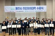 한민일보 서울포커스 김다남 기자 | 현원돈 제주시 부시장은 27일 평생학습관 대강당에서 열린 ‘제4기 제주시 주민자치대학 수료식’에 참석해 교육과정을 마친 수료생들에게 축하의 인사를 전했다. 이날 수료식에서는 지난 6월부터 9월까지 4개월간 주민자치대학에서 ▲기본소양(지역문제 갈등관리 및 해결과정ㆍ제주 이해를 위한 미술관 속 세계여행), ▲지방자치(제주의 지속가능발전 목표ㆍ주민자치회 도입과 주민자치 우수사례 등), ▲실무역량(Chat GPT 이해와 주민자치 활용ㆍ주민자치 퍼실리데이터 교육 등), ▲워크숍 등의 교육을 이수한 33명에게 수료증이 전달됐다. 한편, 이번 주민자치대학은 (사)한국지역혁신연구원에 위탁해 제주특별자치도 소통협력센터에서 15주 동안 매주 목요일 오후 6시 30분부터 2시간 교육을 진행했다. 현원돈 제주시 부시장은 “이번 교육과정을 통해 습득한 지식과 경험이 지역사회 발전에 적극적으로 활용되길 바란다”며, “특히, 제주형 주민자치회 출범 등 주민자치의 새로운 방향을 모색하고 있는 시기에 여러분의 활동이 풀뿌리 민주주의 정착과 주민 주도 자치문화 확산에 큰 힘이 될 것이라 기대한다”고 전했다.
