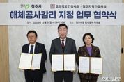 한민일보 서울포커스 김다남 기자 | 청주시는 24일 대한건축사협회 충청북도건축사회, 청주지역건축사회와 ‘건축물 해체공사 감리자 지정 업무대행에 관한 업무협약(MOU)’을 체결한다. 임시청사 직지실에서 개최된 협약식에는 이범석 청주시장과 충청북도건축사회, 청주지역건축사회 관계자들이 참석했다. 이번 협약은 해체공사 현장의 안전성을 높이고 행정 절차의 효율성을 강화하기 위한 것으로, 감리자 지정 과정에서의 투명성과 전문성 확보를 목표로 한다. 주요 내용은 △해체공사 감리자 지정 업무대행 및 시스템 구축 △현장 점검 협력 및 안전사고 예방을 위한 정보 공유 △해체공사 관계자 교육 및 관련 민원 업무처리 등이다. 그동안 해체공사는 신축공사에 비해 안전 관리가 취약하다는 지적이 있었다. 시는 이번 협약을 통해 민간 전문가 단체와 협력체계를 구축함으로써 보다 정밀하고 안전한 해체공사 관리·감독이 가능해질 것으로 기대하고 있다. 이범석 청주시장은 “이번 협약은 시민의 생명과 재산을 보호하기 위한 민관 협력의 모범 사례가 될 것”이라며 “앞으로도 건축사협회와 지속적으로 소통하며 안전한 도