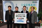 한민일보 서울포커스 김다남 기자 | 충북 영동군은 재단법인 유성문화재단이 22일 오후 영동군청을 방문해 지역 인재 육성을 위한 영동군민장학금 1,000만 원을 기탁했다고 밝혔다. 이번 기탁은 지역 학생들이 안정적인 환경에서 학업에 전념할 수 있도록 응원하기 위한 뜻에서 이뤄졌다. 이날은 용산면 출신 장태순 고문이 참석했다. 재단법인 유성문화재단은 인재를 발굴·육성하고 배움의 기회가 절실한 학생들이 학업을 포기하지 않고 자신의 역량을 마음껏 펼칠 수 있도록 장학금 지원과 다양한 교육 기회를 제공해 오고 있다. 단순한 경제적 지원을 넘어 실질적인 교육 기회 확대와 복지 친화적 교육환경 조성을 목표로 장학사업을 꾸준히 펼치며, 사회적 기여와 국가 발전에 이바지할 수 있는 우수 인재 양성에 힘쓰고 있다. 장태순 고문은 “지역의 미래를 이끌어갈 학생들이 경제적 부담 없이 꿈을 키워갈 수 있도록 돕고자 장학금을 기탁하게 됐다”며 “앞으로도 지역사회와 함께 성장하며 인재 양성을 위한 나눔을 지속해 나가겠다”고 말했다. 군 관계자는 “지역 인재 양성을 위해 오랜 기간 꾸준히 관심을 기울이고 나눔을 실