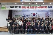 한민일보 서울포커스 김봉순 기자 | 문경시농업기술센터는 11월 11일 농업기술센터 대강당에서 2025년도 문경시 고품질 사과대학 수료식을 열고, 전체 교육 시간의 80% 이상을 출석한 교육생 123명 중 87명이 수료의 영예를 안았다. 2005년도 친환경 사과대학으로 시작된 이 프로그램은 명품 문경사과의 지속 가능한 생산을 목표로 20년째 운영 중이며, 올해는 정원 50명을 훨씬 넘는 123명이 참여해 지난 3월부터 10월까지 총 21회(88시간)에 걸쳐 진행했다. 귀농‧귀촌인과 사과 재배 초보자의 눈높이에 맞춰 재배생리, 병해충 관리, 착색관리 등 기초이론 교육과 농가들이 어려워하는 접목 실습을 병행했으며, 교육 전 과정에서 수강생들의 참여 열기가 뜨거웠다. 고품질 사과대학 수강생은 “8개월 동안 수업과 연계한 현장 견학과 실습을 통해 이론을 더 쉽게 이해하고 받아들일 수 있었고, 앞으로 문경을 대표하는 전문 농업인으로서 책임감을 가지고 문경 사과 발전을 위해 노력할 것”이라고 말했다. 신현국 문경시장은 “고품질 사과대학 교육을 수료한 졸업생들은 문경시의 농업을 이끌어 가는 역군”이라며“앞으로도