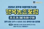 한민일보 서울포커스 김봉순 기자 | 경주시가 오는 29일 오후 3시부터 5시까지 청內 알천홀에서 주민·전문가·행정이 함께 참여하는 ‘경주시 마을만들기 행복농촌포럼’을 개최한다. 이번 포럼은 농촌이 단순한 거주공간을 넘어 서로 돌보고 함께 살아가는 공동체의 터전이라는 인식 아래, 인구 감소와 고령화, 생활방식 변화 등으로 농촌 지역이 직면한 과제에 대응하기 위해 마련됐다. 경주시는 이번 포럼을 통해 농촌지역 활성화 전략과 마을만들기 추진체계의 의미 있는 미래 방향이 폭넓게 논의될 것으로 기대하고 있다. 행복농촌포럼은 경주시 마을만들기 정책 방향 발표를 시작으로 전문가 초청 주제 특강, 우수사례 발표와 질의응답 등으로 구성된다. 특히 2026년부터 단계적으로 추진될 ‘경주형 마을만들기 사업’의 주요 변경 사항과 추진체계 개편 방향을 집중적으로 다룰 계획이다. 주낙영 경주시장은 “그간 농촌공간정비사업과 기초생활거점사업, 농촌중심지 활성화사업 등 다양한 농촌개발 사업을 추진해왔다”며 “이번 포럼을 계기로 지역별 특성에 기반한 맞춤형 농촌 발전 전략을 더욱 강화해 나가겠다”고 말했다.
