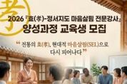 한민일보 서울포커스 김봉순 기자 | 재단법인 영주한국효문화진흥원은 효(孝) 문화의 전문적인 확산을 위해 4월 3일부터 5월 1일까지 ‘효(孝)-정서지도 마음살핌 전문강사’ 양성과정 교육생을 모집한다. 이번 교육과정은 현대사회에서 요구되는 정서지도와 인성교육을 기반으로, 효(孝) 가치를 실천적으로 전달할 수 있는 전문강사를 양성하기 위해 마련됐다. 특히 이론과 실습을 병행한 교육을 통해 현장 적용 능력을 갖춘 인재 양성에 중점을 두고 있다. 교육은 5월부터 10월까지 6개월간 매주 화·목요일 운영되며, 총 84시간의 이론교육과 2회의 현장실습으로 구성된다. 모집 인원은 25명으로, 평생교육사, 교사, 활동가 등 효문화 전파와 인성교육에 관심과 열정을 가진 시민이라면 누구나 신청할 수 있다. 교육 신청은 영주한국효문화진흥원 홈페이지에 게시된 신청서를 작성한 후 방문 또는 이메일로 접수하면 된다. 자세한 내용은 진흥원 홈페이지 공지사항을 참고하거나, 재단법인 영주한국효문화진흥원으로 문의하면 된다. 박찬극 원장은 “이번 전문강사 양성과정을 통해 효(孝) 문화를 체계적으