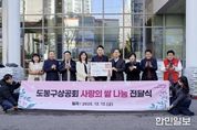 한민일보 서울포커스 김봉순 기자 | 서울 도봉구가 지난 12월 4일 도봉구상공회로부터 도봉구상공회 송년의 밤 행사에서 ‘따뜻한 겨울나기’ 성금 500만 원을 전달받았다. 이날 상공회는 ‘따뜻한 겨울나기’ 성금 외에도 지역 내 중·고등학생 5명에게 각각 50만 원씩 총 250만 원의 장학금을 전했다. 지난 12월 12일에는 구에 쌀 10kg, 709포를 기탁했다. 기탁받은 쌀은 복지관 9개소, 장애인협회 3개소, 사립경로당 24개소에 전달됐다. 김만복 도봉구상공회 회장은 “앞으로도 나눔과 상생의 가치를 실천하는 도봉구상공회가 되겠다.”라고 말했다. 도봉구상공회는 매년 쌀과 성금을 기부하며 지역사회에 나눔의 가치를 실현하고 있다. 오언석 도봉구청장은 “어려운 시기에도 불구하고 따뜻한 나눔을 실천해 주신 도봉구상공회에 깊이 감사드린다.”라고 전했다.