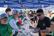 한민일보 서울포커스 김봉순 기자 | 영주시새마을회(회장 우찬우)는 지난 5일 영주소백산마라톤대회가 열린 영주시 국민체육센터 앞에서 참가자와 시민들에게 따뜻한 한 그릇의 온정을 전하는 ‘사랑의 국수 나눔’ 봉사활동을 펼쳤다. 이날 새마을지도자와 부녀회장 50여 명은 이른 아침부터 대회 참가자와 관광객, 시민 등 약 1만여 명에게 나눠줄 잔치국수를 정성껏 준비했다. 특히 회원들은 하루 전부터 깊은 맛을 내기 위한 육수를 끓이며 구슬땀을 흘렸고, 그 정성이 더해진 국수 한 그릇은 행사장을 찾은 이들에게 영주만의 푸근한 인심을 전했다. 이번 봉사활동은 19년째 이어져 온 전통으로, 영주소백산마라톤대회를 찾는 방문객들에게 지역의 따뜻한 이미지를 알리고 공동체 나눔 문화를 확산하는 데 큰 역할을 하고 있다. 우찬우 회장은 “영주를 찾은 많은 분들께 따뜻한 국수 한 그릇으로 푸근한 정을 전할 수 있어 큰 보람을 느낀다”며 “앞으로도 지역사회와 함께하는 나눔 활동을 지속적으로 이어가겠다”고 말했다. 한편, 영주시새마을회는 사랑의 도시락 만들기, 새마을 아카데미, 사랑의 집 고쳐주기, 사랑의 김장 나누