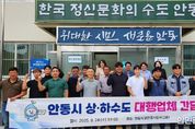 한민일보 서울포커스 김봉순 기자 | 안동시는 9월 24일 맑은물사업국 2층 국장실에서 상․하수도 대행업체 10개 사 대표들과 맑은물사업국 직원 등 20여 명이 참석한 가운데, 사업 품질향상 및 상호협력 강화를 위한 ‘상․하수도대행업체 간담회’를 개최했다. 안동시는 상․하수도 대행업체를 지정해 전문 장비와 전문인력을 상시 유지하고 있으며 상․하수도관 파열, 호우 등 비상 상황 발생 시 신속한 현장 조치로 시민에게 안정적인 급수 및 배수 서비스를 제공하고 있다. 이번 간담회는 다가올 추석 연휴를 대비하여 상․하수도 대행업체의 안전하고 효율적인 대행 업무 수행을 위해 마련됐다. 공사 현장 내 작업자 안전교육 및 안전 조치사항, 급수전 폐전 및 수도계량기 교체 시 유의 사항, 배수 설비 시공기준 및 방법 등을 중점적으로 교육했다. 또한, 대행업체들이 겪고 있는 현장의 문제와 애로사항을 청취해 해소 방안을 마련하고, 상호협력 강화 방안을 모색했다. 안동시 관계자는 “최근 이상기후로 인한 집중호우, 가뭄 등이 빈번히 발생해 상․하수도 시설 관리에 대한 중요성이 대두되고 있다”며, “이번 간담회를 통해 대행업체