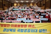 한민일보 서울포커스 김봉순 기자 | 지난 12월 17일 국회의원회관 대회의실에서 김형동 국회의원과 임미애 국회의원이 공동 주최한 ‘경상북도 국립․공공의대 설립 국회토론회’가 열렸다. 이날 토론회에는 이철우 경상북도지사, 권기창 안동시장 등 지자체 주요 인사와 경상북도 국립의과대학 설립 범시도민단을 포함한 시민단체 관계자 등 약 450명이 참석해 경북 지역 의료 여건과 국립의과대학 설립 필요성에 대한 논의를 이어갔다. 또한 권오을 국가보훈부 장관, 김도읍 국민의힘 정책위원회 의장, 김영호 더불어민주당 교육위원회 위원장 등 여야 의원 30여 명이 참석해 경북 국립의대 설립에 대한 관심을 보였다. 1부 개회식에서는 참석자들이 ‘경북 도민의 염원, 국립․공공의대 설립’이라는 문구가 적힌 손팻말을 들고 지역 의료 현안에 대한 공감의 뜻을 함께 표현했다. 2부에서는 유천 국립목포대 의과대학설립추진단 부단장이 ‘전남 국립의대 설립 현황 및 계획’을, 정태주 국립경국대학교 총장이 ‘경북도 국립․공공의대 설립의 필요성과 추진 방향’을 주제로 발표했다. 이어진 토론에서는 정태주 총장이 좌장을 맡고 김윤