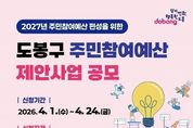 한민일보 서울포커스 김봉순 기자 | 서울 도봉구가 2027년 예산편성을 위한 주민참여예산 제안사업을 공모한다. ‘주민참여예산제도’는 주민이 사업을 직접 제안·심사하고 예산편성 과정에 참여함으로써 구 예산의 투명성과 민주성을 높이는 제도다. 공모 분야는 주민의 복리 증진 및 주민 생활에 밀접한 사업 중 주민이 필요하다고 생각하는 사업이다. 사업별 제안 규모는 5천만 원 이하이며, 공연‧축제 등 행사성 사업이나 특정인, 특정 단체를 지원하는 사업 등은 제외된다. 도봉구민이면 누구나 신청할 수 있으며, 신청은 4월 24일까지 도봉구 주민참여예산 누리집으로 하면 된다. 신청서를 작성해 도봉구청 기획예산과 또는 동 주민센터로 방문 제출해도 된다. 접수된 제안은 사업부서의 타당성 검토를 거친 후, 주민참여예산위원회 심사, 주민 모바일 투표를 거쳐 2027년 주민참여예산사업으로 최종 선정된다. 선정된 사업은 하반기 예산편성 과정 이후 내년도에 소관부서에서 사업을 추진한다. 현재 구는 지난해 공모 절차를 통해 선정한 30개 사업을 추진 중이다. 선정 사업으로는 ▲보도를 막는 통신주 이전