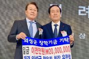 한민일보 서울포커스 김봉순 기자 | 재단법인 의성군인재육성재단(이사장 김주수 의성군수)은 지난 12월 10일 경상북도 향교재단 정상영 이사장이 의성군 인재 육성을 위해 장학금 500만 원을 기탁했다고 밝혔다. 정상영 이사장은 팔순을 맞아 잔치 대신 그 비용을 장학금으로 기탁하며 지역사회와 미래세대를 위한 나눔을 실천했다. 정상영 이사장은 “팔순을 맞아 받은 많은 축하의 마음을 지역 학생들에게 돌려주고자 한다. 이 장학금이 지역의 미래를 이끌 인재들에게 작은 보탬이 되길 바란다”고 말했다. 김주수 의성군수는 “고향에 대한 깊은 애정과 뜻깊은 나눔을 실천해 주신 정상영 이사장님께 진심으로 감사드린다”며 “기탁해 주신 장학금은 지역 학생들이 꿈을 키우고 훌륭한 미래의 주인공으로 성장할 수 있도록 학업 지원과 인재 육성을 위해 소중히 사용하겠다”고 말했다.