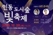 한민일보 서울포커스 김봉순 기자 | 구미시는 오는 12월 20일 인동로데오거리 일원에서 청춘의 에너지와 음악이 어우러지는 '2025년 인동도시숲빛축제'를 개최한다. 이번 축제는 젊은 도시로서 도심에 활력을 더하고 겨울철 야외 문화 향유 기회를 넓히기 위해 마련됐다. 행사는 오후 2시 30분부터 밤 9시 30분까지 인동로데오거리 특설무대에서 진행되며, 12월 18일부터 30일까지는 크리스마스 시즌을 맞아 경관조명을 설치해 시민과 방문객을 위한 포토스폿도 운영한다. 오후 2시 30분부터 5시까지는 레크리에이션과 지역 버스킹 밴드 공연, 뮤지컬 갈라쇼 등이 이어져 어린이부터 어른까지 온 가족이 함께 즐길 수 있는 프로그램을 선보인다. 오후 5시부터는 공식행사를 시작으로 레트로 댄스 가수 박남정과 채연의 무대, 서커스 공연, 디제잉까지 다채로운 라이브 공연이 펼쳐져 겨울밤 도심을 열정으로 채울 예정이다. 김장호 구미시장은 “인동도시숲빛축제는 젊은 도시 구미의 활력을 시민과 함께 나누는 자리”라며 “많은 시민과 관광객이 인동로데오거리를 찾아 음악과 빛이 어우러진 겨울 축제를 즐기길 바란다”고 말