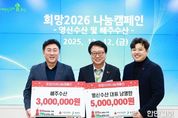 한민일보 서울포커스 김서윤 기자 | 울진군은 지난 12월 12일 재경울진경제인협의회로부터‘희망2026 나눔캠페인’성금 3,000만 원을, 명예회장이자 울진 아너 3호 동아베스텍(주) 배준집 대표로부터 성금 3,000만 원을 각각 기탁받았다. 재경울진경제인협의회는 타지에 거주하고 있는 울진 출신 출향 경제인들로 구성된 단체로 매년 고향 울진을 방문해 성금 기탁과 나눔 활동을 꾸준히 이어오고 있다. 재경울진경제인협의회 명예회장인 배준집 동아베스텍(주) 대표는 성금기탁과 함께 고향사랑기부제에 2,000만 원을 추가로 기부하며 고향 사랑을 실천했다. 배준집 대표는“이웃사랑 나눔을 위한 캠페인에 동참하게 되어 기쁘다”며“올해 11월 우리 기업이 은탑산업훈장을 수상한 만큼, 이번 기부를 통해 그 기쁨을 지역사회와 함께 나누고 싶다”라고 말했다. 장현덕 재경울진경제인협의회장은“협의회 회원들이 뜻을 모아 마련한 성금이 고향의 어려운 이웃들의 따뜻한 연말 보내기에 도움이 되기를 바란다”라고 말했다. 울진군 관계자는“해마다 울진의 어려운 이웃들을 잊지 않고 지속적으인 나눔을 실천해주시는 출향 경제인들께