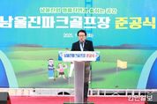 한민일보 서울포커스 김서윤 기자 | 울진군은 지난 11월 25일, 파크골프 전국대회 유치를 위한‘남울진파크골프장’준공식을 성황리에 개최했다. 이날 행사에는 손병복 울진군수, 체육회 및 파크골프협회 관계자, 지역 주민 등 300여 명이 참석해 준공을 축하하고 지역 균형발전과 지역경제 활성화를 함께 기원했다. 준공식은 ▲경과보고 ▲기념사 및 축사 ▲제막식 ▲시타 행사 순으로 진행됐으며 지역의 새로운 체육·관광 인프라 조성에 대한 기대감을 크게 높였다. 이번에 조성된 남울진파크골프장은 총면적 6만 7,000㎡ 부지에 36홀 코스, 화장실 등 편의시설을 갖춘 대규모 체육시설로, 총사업비 27.5억 원이 투입됐다. 2024년 3월 실시설계를 시작으로 2025년 5월 착공하여 2025년 11월 준공을 완료했으며, 잔디 생육 및 보호 기간을 거쳐 내년 5월 정식 개장할 예정이다. 남울진파크골프장은 최장 150m, 최대 30m 폭의 넓고 시원한 페어웨이와 다양한 난이도의 코스로 구성된 경기장이다. 또한, 하천과 동해바다가 만나는 하류 지역에 위치해 탁 트인 조망을 갖춘 뛰어난 자연경관을