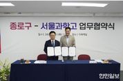 한민일보 서울포커스 김서윤 기자 | 종로구는 9월 23일 서울과학고등학교와 ‘서울과학고 영재교육원 종로구민 특별선발 업무협약’을 맺었다. 협약에 따라 서울과학고는 매년 영재교육원에서 구민 또는 관내 중학교 재학생 20명을 특별 선발하고, 종로구는 영재교육원 학생·학부모의 부담을 줄이기 위해 수익자부담금을 교육경비로 지원한다. 이로써 학생들은 서울과학고의 첨단 학습 시설과 우수한 교육 자원을 경험하며 과학적 사고력과 문제 해결 능력을 키우고, 진로 탐색의 기회도 가질 수 있을 것으로 기대된다. 아울러 양 기관은 초등학생 멘토링 사업이나 방학 캠프 등을 함께 기획·운영할 계획이다. 정문헌 구청장은 “앞으로도 종로 청소년이 과학과 수학을 즐겁게 배우고 자신감을 가질 수 있도록 아낌없이 지원하겠다”라고 밝혔다.