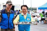 한민일보 서울포커스 김서윤 기자 | 울진군은 지난 9월 18일 죽변면 해군부대 주차장 일원에서 울진군종합자원봉사센터(센터장 장태윤) 주관으로‘참! 좋은 사랑의 밥차와 함께하는 행복마을 재능 나눔 활동’을 성황리에 개최했다. 이번 행사에는 14개 자원봉사단체, 죽변항에 위치한 해군 1함대 포항대대 214전진기지대 장병 등 500여 명이 참여하여 지역사회에 따뜻한 나눔을 전했다. 이날 제공된 식사는 IBK기업은행의 후원과 한국자원봉사센터협회의 지원으로 운영된‘참! 좋은 사랑의 밥차’를 통해 마련돼 이웃의 정을 나누는 계기가 됐다. 특히 손 마사지, 네일아트, 메이크업, 즉석 사진 촬영과 액자 제작, 타로 상담 등 다양한 재능 나눔 봉사활동이 어우러져 주민들이 직접 참여하고 소통하는 축제의 장으로 꾸며졌다, 손병복 울진군수는“자원봉사는 단순한 나눔을 넘어 지역사회를 잇는 연결고리로서 중요한 의미를 가진다”며“군민 모두가 더불어 행복한 울진을 만들기 위해 지속적으로 지원할 것”이라고 밝혔다.