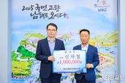 한민일보 서울포커스 김서윤 기자 | (재)남해군인재육성재단은 서상마을회와 보물섬남해 미니단호박연합회에서 각각 200만 원, 홈마트 신차철 대표가 100만 원, 남해군합창단에서 174,400원의 인재 육성 기금을 기탁했다고 밝혔다. 9월 12일 서상마을회 김정호 이장이 군수실을 방문해 인재육성기금 200만 원을 기탁했다. 김정호 이장은 “서상마을회는 남해의 교육발전을 위해 매년 기탁을 이어오고 있다. 지역 아이들이 훌륭히 성장해 남해의 미래가 더욱 밝아지기를 바란다.”라고 전했다. 서상마을회는 총 6회에 걸쳐 1,200만원을 기탁했으며, 꾸준한 나눔과 봉사로 지역사회의 귀감이 되고 있다. 같은 날 보물섬남해미니단호박연합회는 마늘연구소에서 열린 ‘보물섬남해미니단호박연합회 정기총회’에서 인재육성기금 200만원을 기탁했다. 박현수 회장은 “예측하기 어려운 기후변화로 농사가 갈수록 힘들지만, 교육만큼은 안정적이고 풍요로워야 한다는 마음으로 회원들이 마음을 모아 기탁한다.”라고 전했다. 보물섬남해미니단호박연합회는 총 4회에 걸쳐 800만원의 인재육성기금을 기탁한 바 있다. 9월 23