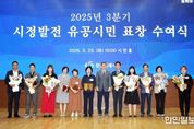 한민일보 서울포커스 김서윤 기자 | 창원특례시는 23일 오전 10시 시청 시민홀에서 ‘2025년도 3분기 시정발전 유공시민 표창 수여식’을 개최했다. 이날 수여식에서는 지역사회와 시정 발전을 위해 묵묵히 봉사해 온 시민 100명이 수상의 영예를 안았다. 특히, 마산소방서 이보검 소방사와 경남경찰청 범죄예방대응과 백정한 경감은 소중한 시민의 생명을 구한 유공 의인으로 인정받아 표창패를 수여받으며 참석자들의 큰 박수를 받았다 이보검 소방사는 퇴근길 마창대교 난간에서 극단적 선택을 하려던 시민을 설득해 구조했으며, 백정한 경감은 실종 신고된 치매 어르신을 적극 수색해 무사히 구조하는 등 시민 안전을 지켰다. 장금용 창원특례시장 권한대행은 “지역과 이웃을 위해 헌신하신 수상자 여러분께 진심으로 감사드린다”며, “창원시는 앞으로도 묵묵히 봉사하는 분들이 존중받고 격려받을 수 있도록 적극 지원하겠다”고 말했다.