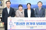 한민일보 서울포커스 김서윤 기자 | 지난 19일, BNK경남은행 사랑나눔재단(이사장 김태한)과 하나님의교회 세계복음선교협회(총회장 김주철목사)가 추석 명절을 맞아 어려운 이웃을 위한 기탁식을 진행하며 지역사회에 훈훈한 온기를 더했다. BNK경남은행 사랑나눔재단은 소외계층 지원을 위한 사회공헌활동의 일환으로 거창사랑상품권 1만 원권 1,000매를 기탁했으며, 이는 세대별 5만 원씩 총 200세대에 전달될 예정이다. 이번에 지원되는 거창사랑상품권은 관내 전통시장과 지역 상점에서 현금처럼 사용할 수 있어, 명절을 준비하는 취약계층 가정의 생활에 실질적인 도움이 되는 동시에 지역경제 활성화에도 기여할 것으로 기대된다. 재단은 2024년 김치 10kg과 거창사랑상품권 등 4회에 걸쳐 24,600천원 상당을, 2025년에는 식료품 꾸러미 100개와 선풍기 100대(총 7,838천원 상당)를 기탁하는 등 매해 명절과 연말마다 어려운 이웃을 위한 다양한 물품을 꾸준히 지원하며 이웃사랑을 실천 해오고 있다. 하나님의교회 세계복음선교협회는 추석 명절을 맞아 어려운 이웃에게 따뜻한 마음을 전하고자 식료품꾸러미 20상자를 기탁했다.