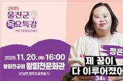 한민일보 서울포커스 김서윤 기자 | 울진군은 오는 11월 20일 오후 4시 왕피천공원 왕피천문화관에서 제34회 울진군 목요특강을 개최한다. 이번 특강은‘제 꿈이 다 이루어졌어요’라는 주제로, 배우이자 작가로 활동 중인 정은혜 작가를 초청해 진행된다. 정은혜 작가는 발달장애를 가진 예술가로서, 자신만의 시선으로 그려낸 따뜻한 그림과 삶의 이야기를 통해 많은 사람들에게 감동을 전해왔다 드라마‘우리들의 블루스’와 예능 프로그램‘동상이몽’등 다수의 방송에 출연하며 활발히 활동 중이다. 이번 강연에서는 정은혜 작가의 가족이 함께 무대에 올라, 서로를 이해하고 함께 성장해온 여정을 들려준다. 발달장애를 가진 예술가로서 겪은 도전과 변화의 순간들, 그리고 예술 속에서 피어난 사랑과 가능성의 이야기를 나누며, 군민들에게 포용과 공감의 메시지를 전할 예정이다. 손병복 울진군수는 “이번 특강이 발달장애에 대한 이해와 장애인에 대한 긍정적인 인식을 높이는 계기가 되길 바란다”며“민 모두가 다양성과 공감의 가치를 되새기는 뜻깊은 시간이 되기를 기대한다”라고 말했다.