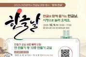 한민일보 서울포커스 김서윤 기자 | 대전시는 579돌 한글날을 맞아 기념 문화행사 ‘함께 한글’을 10월 9일(목) 오후 1시부터 대전시청 남문광장(시민 잔디광장)에서 개최한다. 이번 행사는 대전시가 주최하고 한남대학교 국어문화원이 주관하며, 한글의 창의성과 과학성을 널리 알리고 우리말과 글의 소중함을 시민과 함께 나누기 위해 기획됐다. 행사에서는 ▲타악공연(림스타악기앙상블) ▲비누방울 공연(MC 선호) ▲한글날 레크리에이션 등 문화공연과 함께, 한글 열쇠고리·초롱등 만들기 등 10여 종의 만들기 체험 교실, 전시회, 전통놀이, ‘줍깅’(쓰레기 줍기+조깅) 등 참여형 프로그램이 다채롭게 진행된다. 특히 만들기 체험 교실은 사전 예약과 현장 접수를 병행해 운영되며, 사전 예약은 9월 20일부터 10월 4일까지 ‘한남대학교 국어문화원’ 누리집 알림창 또는 단축 주소를 통해 신청할 수 있다. 고현덕 대전시 교육정책전략국장은 “이번 행사는 시민들과 함께 한글의 가치를 되새기며, 대전시민 모두 함께 즐길 수 있는 뜻깊은 자리가 되길 바란다”라고 말했다. 자세한 사항은 한남대학교 누리집 공지 사항