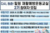 한민일보 서울포커스 김서윤 기자 | 거창군은 10월 2일부터 12월 30일까지 운영되는'다시, 청춘 힐링 재활예방운동교실 2기'참여자 8명을 오는 9월 22일부터 26일까지 5일간 모집한다. 해당 프로그램은 거동이 가능한 65세 이상 거창군민을 대상으로 근력 증진 및 일상생활 동작 훈련을 통해 장애를 예방하고 사회 참여를 확대하는 것을 목적으로 하며, 특히 참여 경험이 없는 신규대상자를 우선 선정해 더 많은 군민이 프로그램에 참여할 수 있도록 할 예정이다. 프로그램은 재활전담인력의 지도하에 보건소 물리치료실에 구비된 6종 기구를 활용해 소규모 맞춤형 그룹 운동을 진행한다. 운영 일정은 매주 화요일과 목요일 오후 3시부터 4시까지 주 2회로 진행되며, 신청 방법은 선착순 현장 접수로 신분증 지참 후 보건소 1층 물리치료실을 방문하면 된다. 이번 프로그램은 장애 발생 예방과 신체기능 회복은 물론, 자립적인 일상생활 수행 능력 향상을 도모함으로써 지역사회중심재활사업의 성과를 한층 확대할 것으로 기대된다. 이정헌 보건소장은 “이번 재활예방운동교실을 통해 군민 여러분이 스스로 건강을 지키고 활력을 되찾을 수