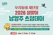 한민일보 서울포커스 김성윤 기자 | 남양주시는 10일부터 22일까지 시 전역에서 ‘설맞이 우리동네 새단장 남양주 쓰담데이 집중 추진기간’을 운영한다고 밝혔다. 이번 집중 추진은 설 명절을 앞두고 생활권 주변 환경을 정비하고 시민이 일상 속에서 실천하는 환경정화 활동을 확산하기 위해 마련됐다. ‘남양주 쓰담데이’는 시가 운영하는 대표적인 시민참여형 환경정화 프로그램이다. 특히 이번 쓰담데이는 행정안전부가 추진하는 전국 단위 환경정화 캠페인 ‘우리동네 새단장’과 연계해 추진한다. 지역별·단체별 자율 참여를 통해 공동체 중심의 환경 개선 활동을 확산하는 데 의미를 둔다. 2026년 현재 쓰담데이에는 약 5,200명과 277개 단체가 참여한다. △환경보호단체 △지역사회단체 △우리아파트봉사단 △상인회 등 다양한 주체가 정기적인 활동을 이어가고 있다. 시는 이번 집중 추진기간을 통해 명절 전 도시 환경을 정비하고, 시민 주도의 환경보전 실천 분위기를 확산시킬 방침이다. 이후에도 시민 중심의 자율적인 마을 단위 쓰담데이를 위한 행정적 지원을 지속할 계획이다. 쓰담데이 참여를 희망하는 시민은 남양주시