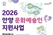 한민일보 서울포커스 김성윤 기자 | 안양문화예술재단은 지역 예술인의 창작활동을 지원하고 문화예술 진흥을 도모하기 위한 ‘2026년 안양 문화예술인 지원사업’ 희망자를 오는 16일 17시까지 공개 모집한다. 이번 공모는 안양에서 활동하는 예술인과 예술단체를 대상으로 하며, 안정적인 창작환경 조성과 더불어 경기도 내 우수 예술인의 안양 유입을 통해 시민들에게 보다 풍성한 문화예술 향유 기회를 제공하는 것을 목적으로 한다. 총 사업 규모는 3억 2,630만원이며, 이 중 지원금은 2억 7,400만원이다. 특히 올해는 ‘정산 간소화’ 제도를 시범 도입하여 예술인의 행정부담을 줄이고 창작활동에 더욱 집중할 수 있는 환경을 조성할 계획이다. 재단 관계자는 “이번 지원사업을 통해 지역 예술생태계가 활성화되고, 시민들의 문화향유 기회가 확대됨으로써, 안양이 보다 풍요로운 문화도시로 도약하길 기대한다”고 밝혔다.