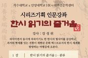 한민일보 서울포커스 김성윤 기자 | 안양시 석수도서관은 안양대학교 HK+사업단 지역인문학센터와 함께 시리즈기획 인문강좌의 일환인‘한시 읽기의 즐거움’ 강좌를 오는 11월 7일부터 12월 5일까지 운영한다고 17일 밝혔다. 이번 강좌를 통해 수강생들은 작사(作詞)와 작곡(作曲)의 특징을 동시에 지닌 한시(漢詩)의 형식미를 감상하고, 과거와 현재를 잇는 전통이 체현된 문화 텍스트로서의 한시 세계를 탐방한다. 석수도서관 관계자는 “석수도서관과 안양대학교 지역인문학센터가 협업하여 진행하는 이번 시리즈기획 인문강좌를 통해 시민들이 한시의 매력적인 세계를 깊이 탐구하고, 한시를 읽는 즐거움을 알 수 있길 바란다”고 밝혔다. 서울대학교 중국어문화연구소 책임연구원이자 한시 칼럼니스트 강성위가 진행하는 이번 강의는 10월 21일 10시부터 안양시도서관 홈페이지에서 접수하면 된다.