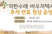 한민일보 서울포커스 김성윤 기자 | 안양시가 오는 추석 연휴 기간(10.3.~10.9.)에 교통약자의 이동권 보장을 위한 특별교통수단 이동지원서비스 ‘착한수레’와 ‘바우처택시’를 정상 운행한다고 1일 밝혔다. 연휴 기간에도 주 3회 이상 병원을 방문해야 하는 신장투석환자뿐 아니라 일상적인 외출과 식사가 어려운 장애인과 노약자 등에게 착한수레와 바우처택시가 따뜻한 발이 되어줄 예정이다. 중증 보행 장애인 및 휠체어 이용자 등 거동이 불편한 시민들이 이용할 수 있는 착한수레는 지난 8월부터 한국도로공사 및 민자고속도로에서 하이패스 통행료가 전면 무료화돼 이용 부담도 줄었다. 시는 올해 착한수레 노후차량 6대를 교체하는 등 안전하고 안정적인 운영을 위해 노력하고 있으며, 법정운영대수 36대보다 많은 42대를 운영 중이다. 연휴 기간 착한수레는 24시간 운영되며, 이용신청은 경기도광역이동지원센터 콜센터, 모바일 앱 및 홈페이지에서 할 수 있다. 착한수레의 이용대상에서 제외된 비휠체어 교통약자 등은 바우처택시를 이용할 수 있다. 바우처택시는 평상시에는 일반택시로 운행되다가 안양시 교