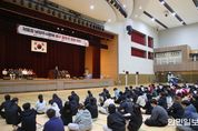 한민일보 서울포커스 김성윤 기자 | 용인특례시는 21일 오후 처인구 용인중앙시장 놀이광장(금복교) 김량장 학생만세운동 기념표석 일원에서 ‘제107주년 김량장 독립만세운동 기념행사’를 열었다고 밝혔다. 용인문화원 부설 기관인 용인독립운동기념사업회가 주관한 이날 행사에는 이상일 시장을 비롯해 독립유공자 후손, 지역 주민 등 약 200여 명이 참석했다. 용인 지역 만세운동은 1919년 3월 21일 원삼면 좌찬고개에서 시작돼 포곡·수지·기흥으로 확산되며 4월 3일까지 이어진 대규모 항일운동으로, 당시 1만 3200여 명이 참여한 것으로 기록돼 있다. 특히 김량장에서는 1919년 3월 24일 졸업식을 마친 김량장공립보통학교(현 용인초등학교) 학생 20여 명이 만세운동을 주도하자 시장 상인과 주민들이 합세하면서 독립쟁취 시위가 확산됐고, 그로 인해 많은 사람들이 희생됐고 탄압을 받았다. 시는 이러한 역사적 의미를 되새기기 위해 107년 전 독립만세운동이 벌어진 현 중앙시장 금복교 광장에서 기념행사를 마련했다. 이상일 시장은 축사를 통해 “3·1절 노래에 ‘선열하 이 나라를 보소서’란 대목이 있다.