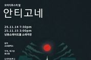 한민일보 서울포커스 김성혜 기자 | 인천시 남동구 남동문화재단은 극단 아토(대표 이종민)의 ‘오이디푸스의 딸 '안티고네'’ 공연이 11월 14~15일 이틀간 남동소래아트홀 소래극장에서 개최된다고 5일 전했다. 이번 공연은 ‘극단 아토’가 고대 그리스 작가 소포클레스의 ‘오이디푸스 왕’과 ‘안티고네’ 두 작품의 연관성에 주목하여 창작한 작품이다. 법의 가치와 인간 본연의 가치가 대립할 때 마주하게 되는 선택에 관해 이야기하며 고전 작품임에도 현시대에 공감할 수 있는 메시지를 던지는 공연이다. ‘극단 아토’는 2025 공연장 상주단체 육성지원사업에 선정된 남동구 소재의 전문예술단체로, 국내외 명작을 새로운 시각으로 재창작하고 활발한 예술교육 활동을 전개하며 공연예술의 발전에 기여하고 있다. 지난 ‘2025 NPAF : 남동공연예술페스타’에서는 남동문화재단과 함께 협력하여 8주간 실시된 시민 대상 예술교육프로그램의 발표회를 진행했고, 야외무대에서는 뮤지컬 갈라 콘서트를 선보이며 남동구민들의 문화 향유 기회를 증진하는 데에 힘을 보탰다. 11월 14일 19시 30분, 11월 15일 15시 남동