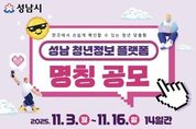 한민일보 서울포커스 김성혜 기자 | 성남시는 오는 11월 16일까지 청년 정보 플랫폼 명칭을 공모한다. 해당 플랫폼은 성남시 청년정책과 지원사업, 청년 활동 공간, 행사 정보 등을 한곳에서 손쉽게 확인할 수 있는 온라인 통합 창구로, 내년 1월 서비스 개시 예정이다. 시는 이러한 성남 청년정보 플랫폼의 목적과 기능 등을 함축적으로 표현하는 명칭을 찾는다. 성남시민 누구나 참여할 수 있으며, 1명당 1개 명칭만 응모할 수 있다. 응모하려면 네이버폼 온라인을 접속해 제안 명칭(10자 이내)과 제안 사유(15자 이상) 적어 ‘제출 버튼’을 누르면 된다. 시는 서면 심사(11.17~21), 성남시청 홈페이지를 통한 시민 선호도 온라인 투표(11.24~12.4)를 거쳐 오는 12월 10일 당선작 5점을 선정한다. 선정자에게는 최우수(1명) 50만원, 우수(2명) 각 20만 원, 장려(2명) 각 5만원 등 총 100만원의 시상금을 성남사랑상품권으로 지급한다. 시 관계자는 “청년정책의 얼굴이 될 이름을 시민이 직접 정하는 뜻깊은 과정”이라면서 “청년이 공감하고 부르기 쉬운