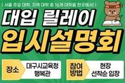 한민일보 서울포커스 김순철 기자 | 대구시교육청은 학생과 학부모에게 실질적이고 공신력 있는 대입 정보를 제공하기 위해 오는 5월 30일부터 6월 29일까지 시교육청 행복관에서 ‘2025 대입 릴레이 입시설명회’를 개최한다고 28일 밝혔다. 이번 대입 릴레이 입시설명회에는 5월 30일 서울대를 시작으로 수도권 9개 대학교와 경북대를 포함한 대구경북권 7개 대학교 등 총 16개 대학교가 참여한다. 이번 대입 릴레이 입시설명회에서 각 대학교별 입학사정관은 ▲학교 및 유망 학과 소개, ▲주요 변경사항, ▲2024학년도 입시결과 분석, ▲전형별 지원전략 등을 참석자들에게 안내한다. 설명회 후에는 학생과 학부모 등 참석자의 질의 사항에 대한 입학사정관의 구체적인 응답 시간도 가질 예정이다. 입시설명회 참여를 희망하는 사람은 별도 사전 신청 없이 당일 현장 방문으로 참여 가능하다. 학교별 일정은 ▲서울대 5월 30일 18시 30분부터 19시 20분까지, ▲수도권 8개 대학교는 토요일 10시부터 11시 50분까지, ▲대구ㆍ경북권 7개 대학교는 6월 22일 13시부터 17시 40분까지 등이다. 강은희