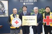 한민일보 서울포커스 김용택 기자 | 전주시의회가 기부문화 확산을 위해 적십자 특별회비 전달에 동참했다. 전주시의회는 8일 의장실에서 남관우 의장과 대한적십자사 전북특별자치도지사 김홍식 회장, 대한적십자사봉사회 최봉만 완산지구 협의회장, 라태원 덕진지구 협의회장 등이 참석한 가운데 2026년도 적십자 특별회비 전달식을 가졌다. 이날 전달된 특별회비(100만원)는 긴급재난구호와 지역사회 봉사, 취약계층 지원 등에 사용된다. 남관우 의장은 “인도주의를 바탕으로 헌신적 봉사활동에 앞장서고 있는 적십자사의 활동에 깊이 감사를 드린다”며 “전주시에 나눔과 봉사의 아름다운 꽃이 활짝 피어날 수 있도록 전주시의회도 최선을 다하겠다”고 말했다. 이에 김 회장은 “적십자 특별회비로 나눔문화 확산에 앞장선 전주시의회에 감사드리며, 앞으로도 적십자는 도움의 손길이 필요한 곳에 늘 함께하겠다”고 화답했다.