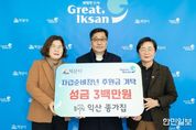 한민일보 서울포커스 김용택 기자 | 익산시에 자립준비청년들의 홀로서기를 응원하는 든든한 나눔이 전달됐다. 익산시는 8일 '종가집(대표 김경일)'으로부터 자립준비청년을 위한 성금 300만 원을 기탁받았다. 이번 성금은 올해 사회로 첫발을 내딛는 자립준비청년들의 안정적인 정착을 돕기 위해 사용될 예정이다. 생활필수품 구입 등을 지원해 자립 초기의 부담을 덜어줄 계획이다. 종가집은 어양동에 있는 음식점으로 2023년과 2024년에 이어 올해도 지역 아동을 위해 기부를 실천했다. 아울러 지역 주민을 위해 백미 10㎏ 40포를 전달하는 등 현물 기부도 병행하며 꾸준한 나눔을 이어오고 있다. 김경일 대표는 "둥지 속의 어린 새가 자라 하늘로 날아오르듯, 우리 청년들이 사회라는 더 넓은 세상으로 힘차게 나아가길 바란다"며 "앞으로도 자립준비청년들이 꿈을 포기하지 않도록 지속적인 관심과 나눔을 이어가겠다"고 말했다. 시 관계자는 "추운 겨울에 이웃을 향한 따뜻한 사랑을 실천해 주신 익산 종가집에 깊이 감사드린다"며 "익산시도 자립준비청년들이 건강한 사회 구성원으로 행복하게 성