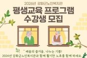 한민일보 서울포커스 김용택 기자 | 강화군노인복지관(관장 윤심)이 오는 12일~16일, 어르신들의 활기찬 노후와 평생학습 기회 확대를 위한 ‘2026년 평생교육 프로그램’ 수강생을 모집한다고 밝혔다. 2026년 평생교육 프로그램은 강화군에 거주하는 만 60세 이상의 어르신을 대상으로 진행되며 ▲건강 증진 6과목 12강좌 ▲교양교육 13과목 24강좌 ▲여가․취미 18과목 30강좌 ▲정보화 1과목 3강좌 ▲기획프로그램 6과목 9강좌 등 어르신들의 관심과 수요를 반영한 다양한 프로그램으로 구성된다. 노인복지관은 이번 프로그램을 통해 어르신들이 일상에서 배움을 이어가고 사회적 교류를 확대할 수 있도록 지원한다는 계획이다. 접수는 1월 12일~16일까지 진행되며, 강화군노인복지관으로 방문 접수가 가능하다. 모집인원 초과 시에는 공정성을 위해 컴퓨터 추첨을 통해 수강생을 선발할 예정이다. 2026년 평생교육 프로그램은 오는 2월 2일~12월 11일까지 운영될 예정이다. 윤심 관장은 “평생교육 프로그램은 단순한 여가 활동을 넘어 어르신들의 자기 계발과 사회참여를 돕는 중요한 역할을 지닌다”며, “많