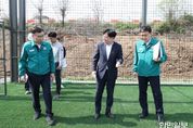 한민일보 서울포커스 김용택 기자 | 김포 최초의 한강변 조망 축구장인 고촌 신곡축구장이 오는 6월 개장을 목표로 하고 있는 가운데, 김포시가 14일 조성현장을 방문해 사업 추진현황을 점검했다. 시는 진입로 공사 등 추진상황을 점검하고 안전하고 조속한 개장에 박차를 가할 예정이다. 김병수 시장을 비롯해 교육문화국장, 도시주택국장 등이 함께 한 이날 현장 행정에서는 축구장 조성 현황을 확인하고 진입로 설치공사 현장을 직접 점검했다. 고촌 신곡축구장 조성사업은 총사업비 약 23억 원을 투입해 인조잔디 축구장 1면과 휴게시설, 야간조명을 조성하는 사업으로, 시민들이 시간 제약 없이 체육활동을 즐길 수 있는 환경을 마련해 생활체육 활성화 및 체육 인프라 확충을 도모하고 있다. 이날 김병수 시장은 “시민들이 공공체육시설을 안전하고 편리하게 이용할 수 있도록 공정 및 현장관리에 만전을 기하겠다”고 말했다. 김포시는 앞으로도 시민 생활과 밀접한 주요 사업 현장을 지속적으로 점검하고, 현장 중심의 행정을 통해 시민 체감도를 높여나갈 계획이다.