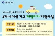 한민일보 서울포커스 김용택 기자 | 군산시는 다자녀 가구의 경제적 부담을 완화하고 이동 편의를 제공하여 저출생 위기를 극복하고자 ‘2026년 전북특별자치도 3자녀 이상 가구 패밀리카 지원사업’ 참여자를 모집한다고 밝혔다. 이번 사업은 전북자치도 내에 1년 이상 계속 거주하면서 군산시에 주소를 둔 18세 이하의 자녀 3명 이상을 양육하는 가구를 대상으로 하며, 공고일 기준 자녀 중 3명 이상이 2007년 4월 1일 이후 출생한 경우에 신청할 수 있다. 지원 대상으로 선정된 총 30가구에게는 6~11인승 패밀리카 신차 구입비의 10%, 가구당 최대 500만 원까지 지원금이 지급된다. 지원 가능한 차량은 2026년 1월 1일 이후 계약하고 공고일 이후 신규로 등록된 국산 승용 또는 승합자동차에 한하며, 전기자동차를 구매할 경우에는 기존의 전기차 보조금을 제외한 실제 차량 구입비를 기준으로 지원금이 산정된다. 다만 공고일 기준 가족 구성원이 7년 이내의 패밀리카를 이미 보유하고 있거나, 지방세를 체납 중인 경우 등은 지원 대상에서 제외된다. 또한 5인승 차량을 2대 이상 보유했거나 7년이 경과