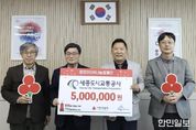 한민일보 서울포커스 김윤이 기자 | 세종도시교통공사는 22일 세종사회복지공동모금회에 ‘희망2026 나눔캠페인’ 성금 500만 원을 기탁했다. 이번 성금은 세종도시교통공사를 비롯해 세종시설공단, 세종테크노파크, 세종창조경제혁신센터, 세종일자리경제진흥원 등 세종시 북부권 5개 공공기관 임직원들이 뜻을 모아 개최한 ‘희망나눔 바자회’ 수익금과 세종도시교통공사 임직원들의 자발적 모금액을 합쳐 총 500만 원의 성금이 조성됐다. 기탁된 성금은 세종사회복지공동모금회를 통해 지역 내 어려운 이웃들을 위한 복지사업에 사용될 예정이다. 도순구 세종도시교통공사 사장은 “연말연시를 맞아 세종시 북부권 공공기관들과 함께 지역 이웃을 위한 따뜻한 나눔을 실천할 수 있어 매우 뜻깊게 생각한다”며 “앞으로도 공기업으로서 지역사회와 상생하며, 주변 기관들과 함께 지속적인 희망 나눔 활동을 이어가겠다”고 말했다. 한편 세종도시교통공사는 지역사회와의 상생을 위해 지난 9월 온기나눔 꾸러미에 동참하는 등, 임직원 모두가 사회적 가치 실현을 위한 다양한 나눔 활동에 적극 참여하고 있다.